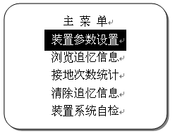 本菜單用來查看各線路的接地次數。按左右鍵翻頁,上下鍵移動光標,按確認鍵可選擇清零光標所在線路的接地次數或全部清零。