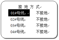 本菜單設置各段母線的接地方式,按上下方向鍵移動光標選擇需修改的參數項,按確認鍵進入修改狀態,此時按方向鍵修改參數,修改后按“確認"鍵保存,按“取消"鍵不做保存。
