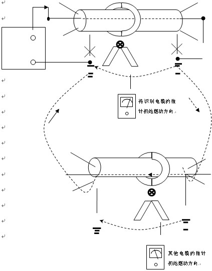 B)耦合法:使待識別電纜兩端與大地相連(通過芯線、屏蔽或者鎧都可),構(gòu)成閉合回路。輸出耦合鉗方向和接收耦合鉗方向一致時表頭指針方向正偏的電纜是待識別電纜。